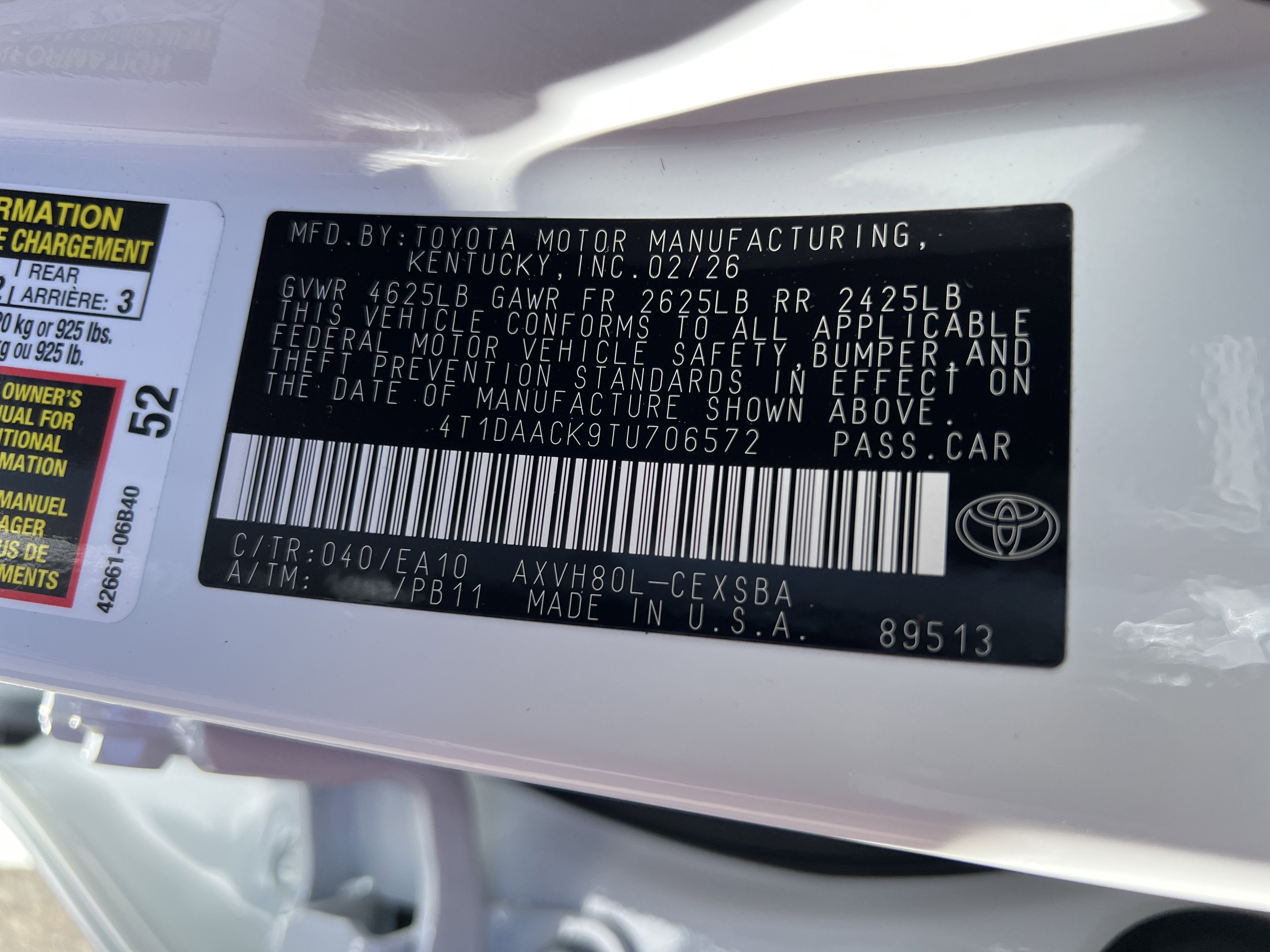 VIN: 4T1DAACK9TU706572