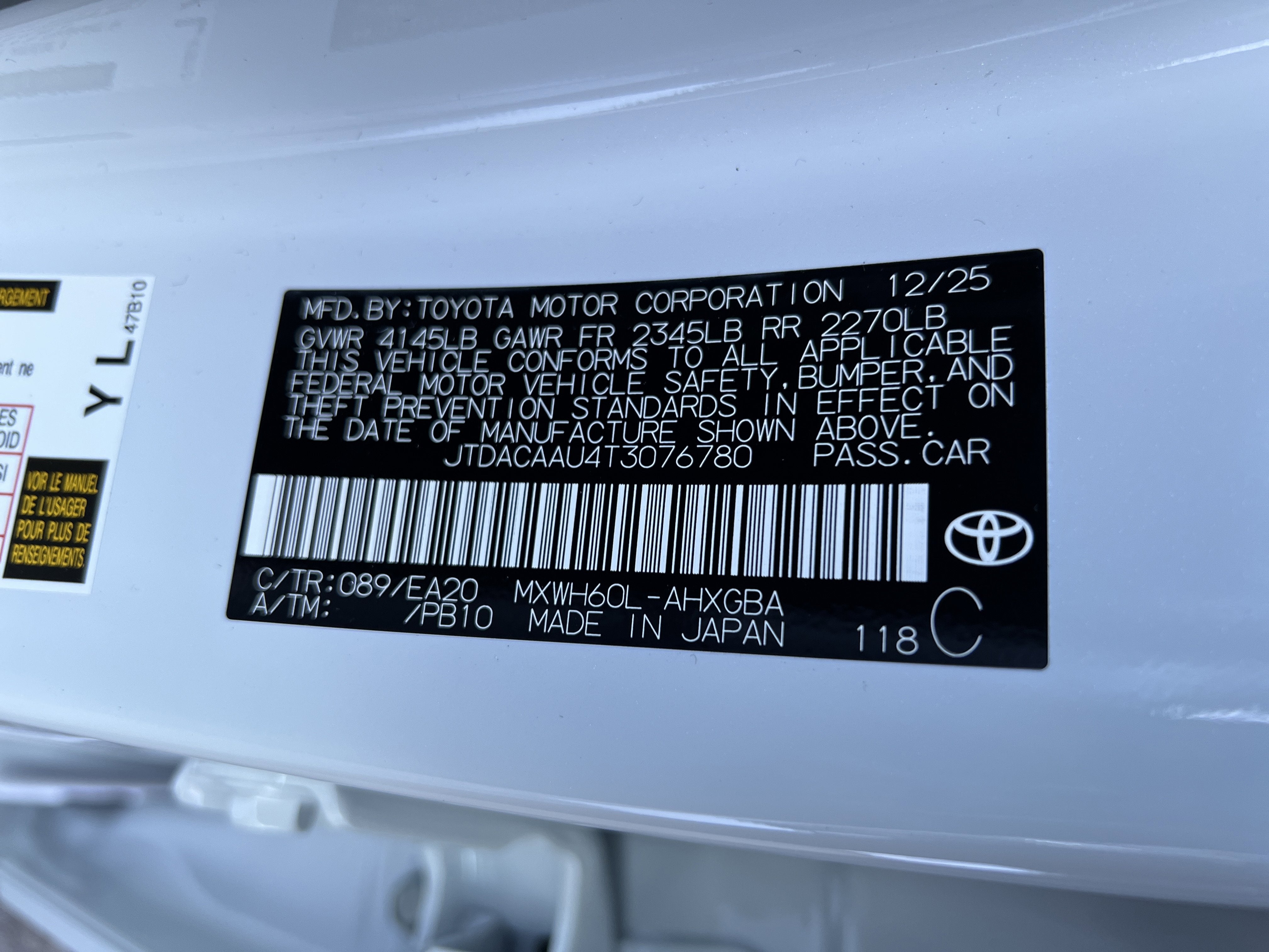 VIN: JTDACAAU4T3076780