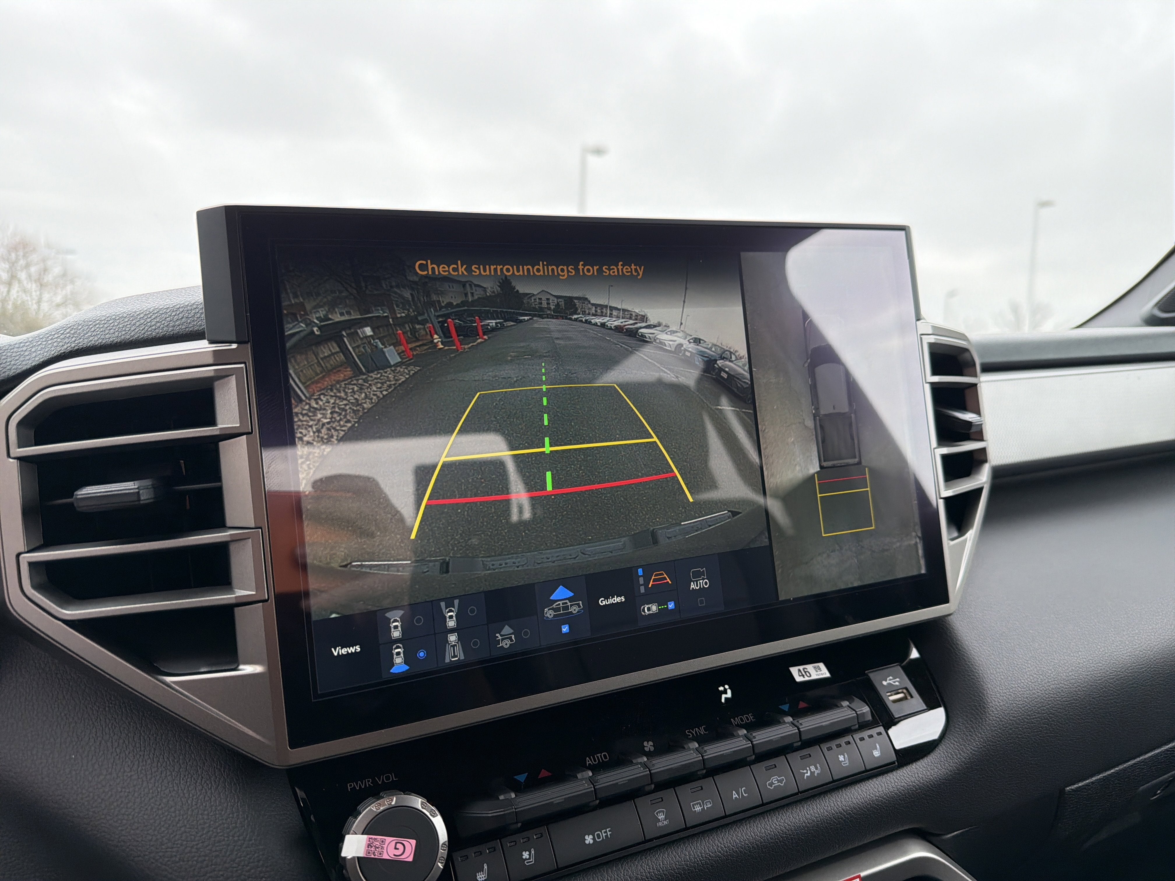 47. The Panoramic View Monitor does not provide a comprehensive view of the area surrounding your vehicle. Look around to confirm clearance. See Owner’s Manual for limitations.