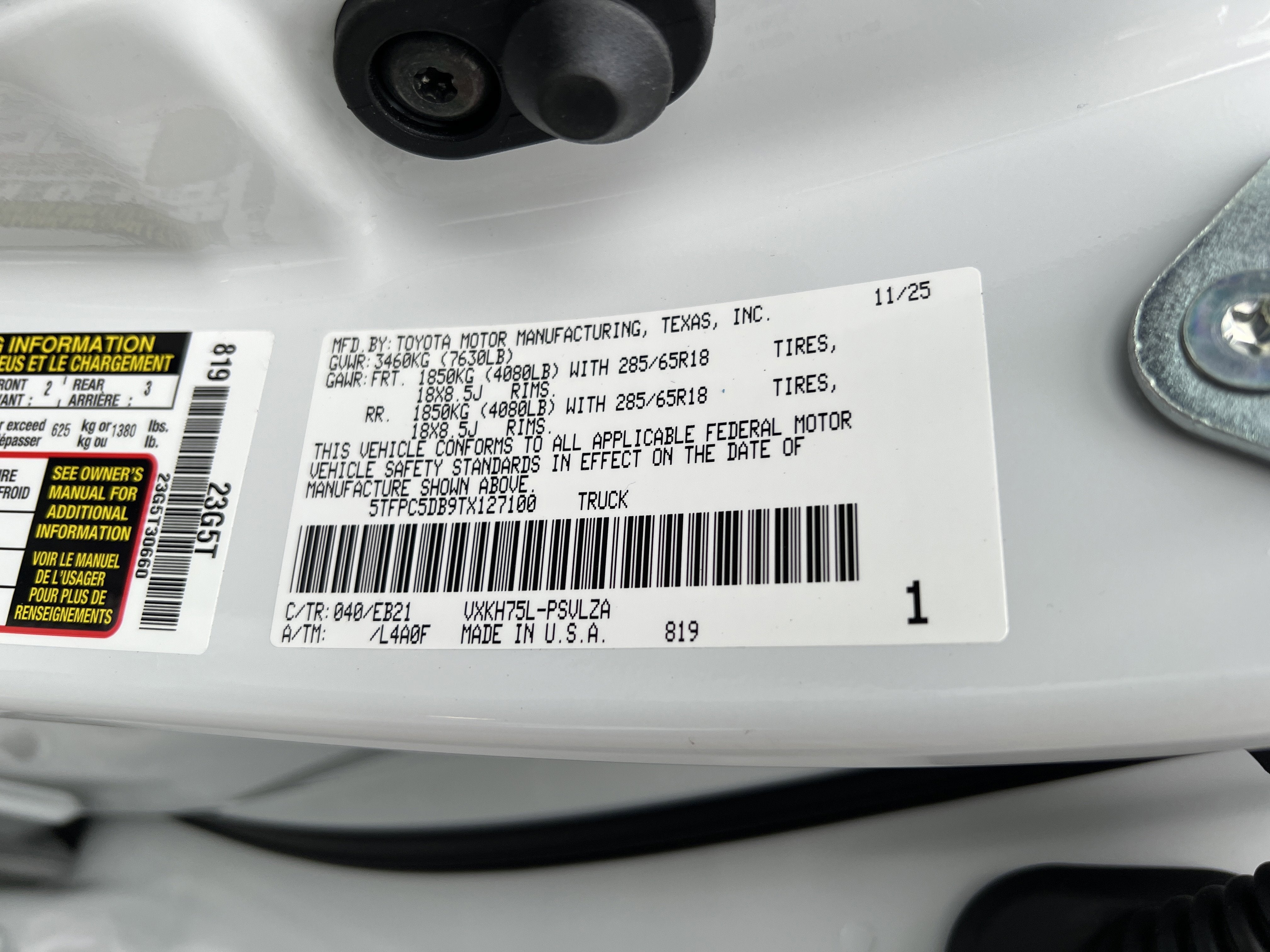 - Front Tire Size: P285/65HR18