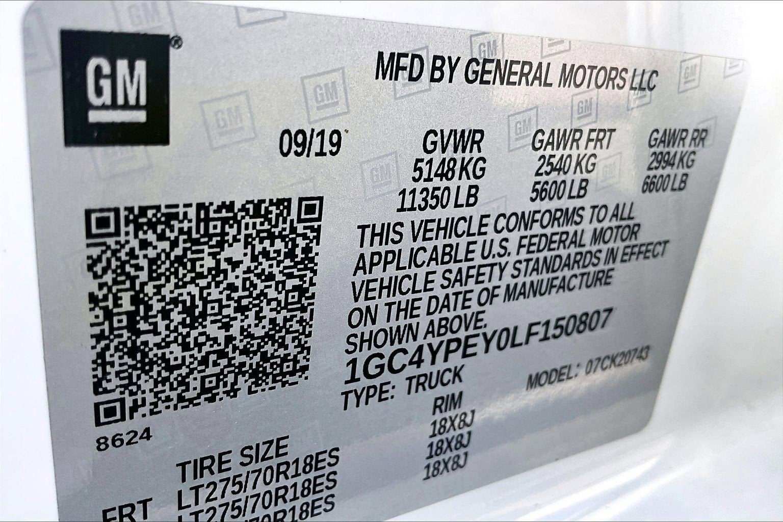 - Tire, spare LT275/70R18 all-terrain, blackwall (Included and only available with (QF6) LT275/70R18E all-terrain, blackwall tires or (QF9) LT275/65R20 all-terrain, blackwall tires with (E63) Durabed, pickup bed. Available to order when (ZW9) pickup bed delete and (QF6) LT275/70R18E all-terrain, blackwall tires are ordered.)