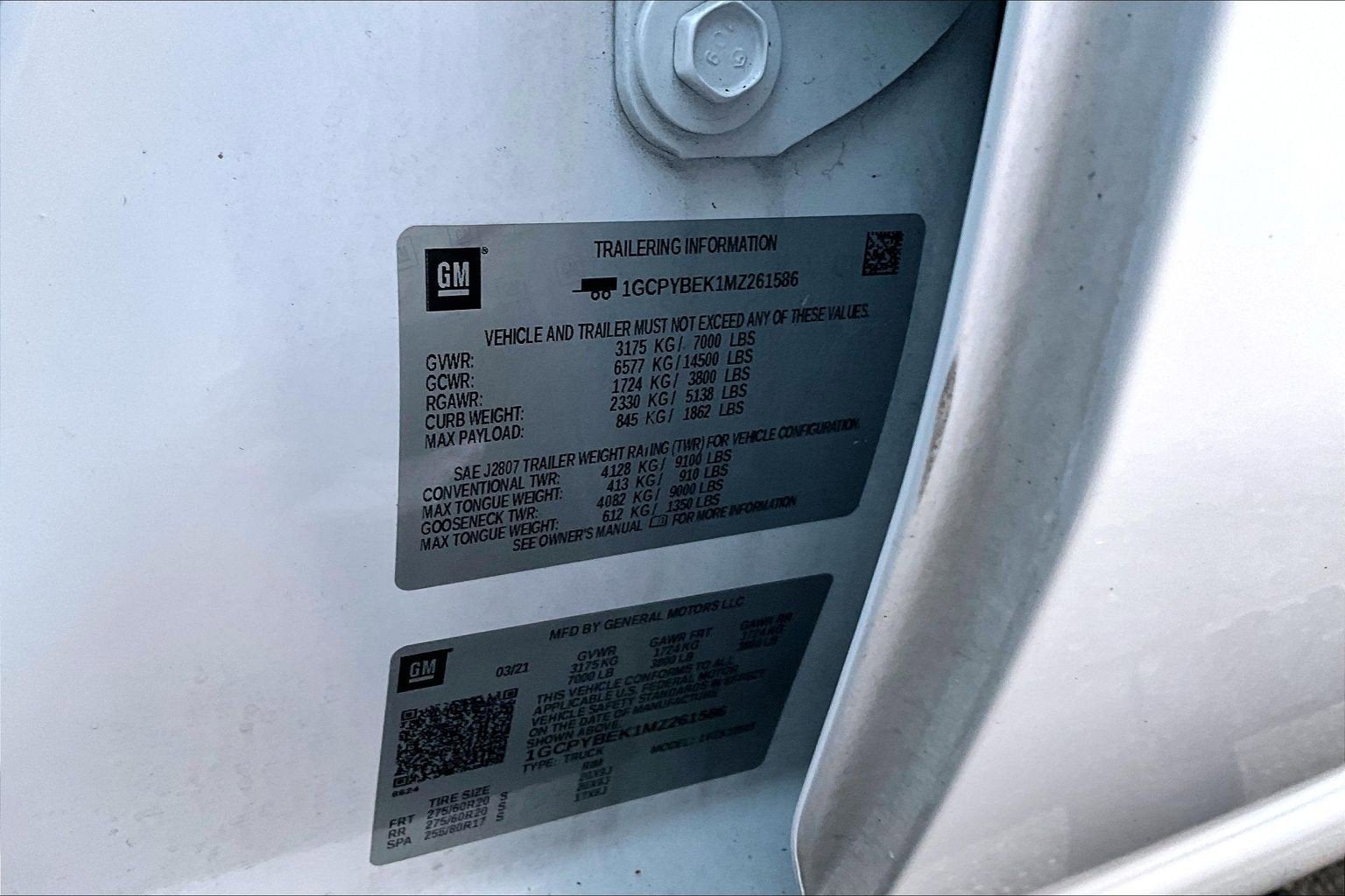 - Tires, 275/60R20 all-season, blackwall