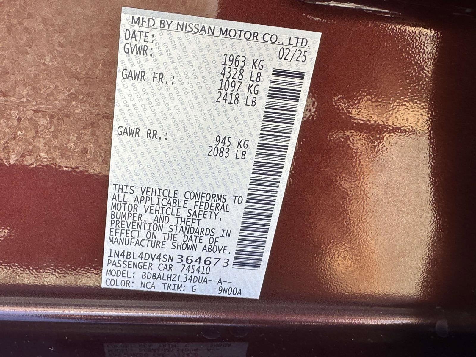- Vehicle Name: Nissan Altima